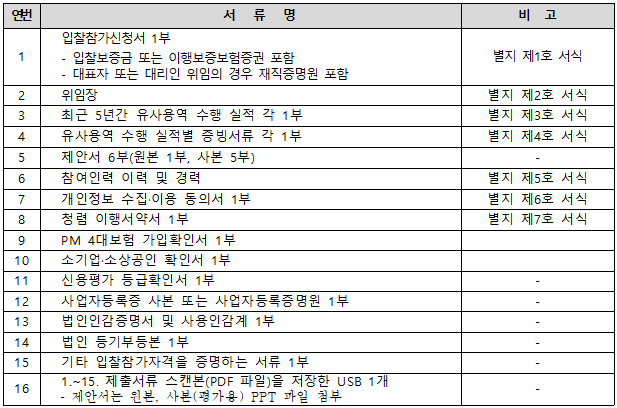 가. 제안서 작성제출에 따른 비용은 입찰자 부담으로 하며, 제출된 서류는 일체 반환하지 않음