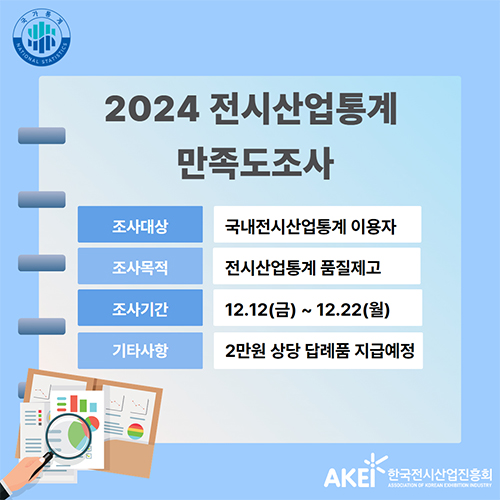 | 제목 | [안내] 2024 전시산업통계 만족도 조사 안내 |